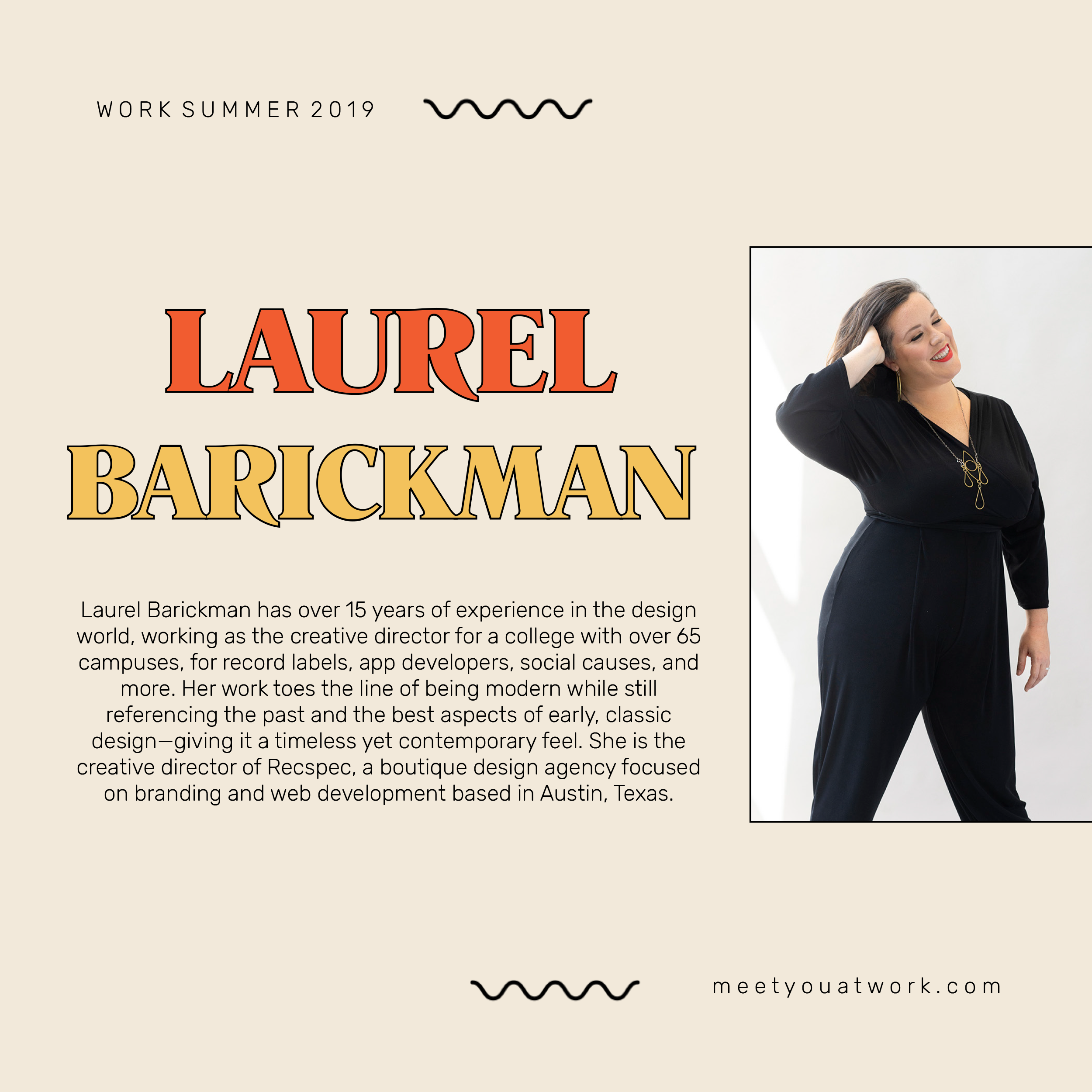 Laurel Barickman has over 15 years of experience in the design world, working as the creative director for a college with over 65 campuses, for record labels, app developers, social causes, and more. Her work toes the line of being modern while still referencing the past and the best aspects of early, classic design—giving it a timeless yet contemporary feel. She is the creative director of Recspec, a boutique design agency focused on branding and web development based in Austin, Texas.